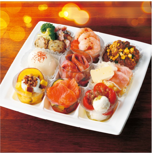 定番のケーキやチキンも種類豊富で心奪われますが、お総菜系のカップデリスペシャルは特別感抜群!たことホタテをブロッコリーと一緒のサラダにしたり、ポテトサラダをトリュフ風味にというスタイル!